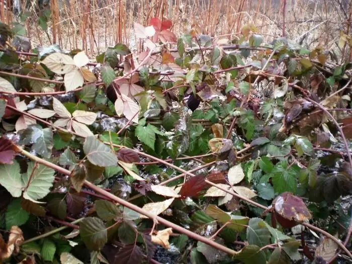 - Позднее укрытие: Оставив ежевику без укрытия на слишком долгое время, садоводы рискуют получить поврежденные побеги и плодовые почки. Корни также могут пострадать в условиях малоснежной зимы.