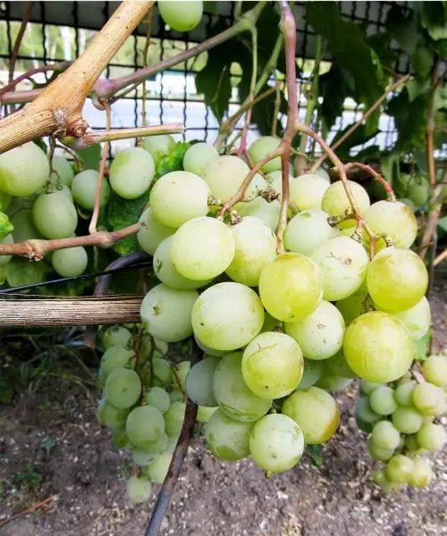 - Ягоды: 10-12 г, белые. Крупные, овальные с плотной кожицы, подходящие для хранения и транспортировки.