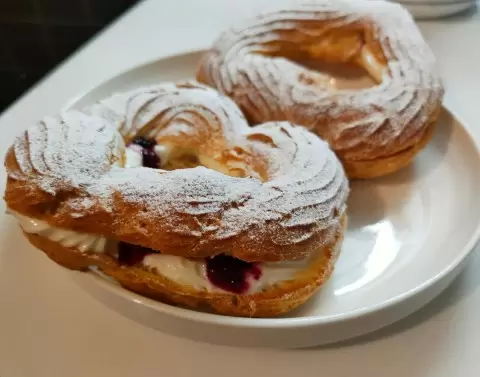 Пока кольца остывают, можно заняться начинкой. Творог смешивается с сахарной пудрой и ванилью, при этом важно перемешивать аккуратно, чтобы избежать взбивания. Остывшие кольца разрезают пополам, заполняют начинкой и по желанию добавляют ягоды. Поверхность десерта можно присыпать сахаром, после чего они готовы к подачи.