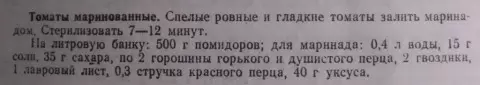 Недавно на рынке были куплены помидоры по выгодной цене, и решение о мариновании стало очевидным. Вместо привычного варианта было решено попробовать новый, проверенный рецепт из старинной кулинарной книги.