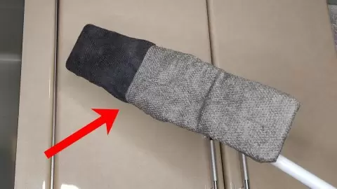 Закрепите салфетки на швабре с помощью канцелярских зажимов. Это позволит вам убирать не только полы, но и высокие кухонные фасады. Для труднодоступных мест, как верхние поверхности шкафов, также используйте швабру — просто обрызгайте необходимое место средством против жира и протрите.