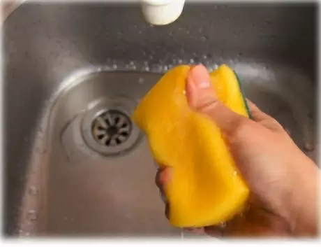 - Подготовка губок. Начать следует с тщательного ополаскивания губки под горячей водой для удаления остаточных загрязнений.