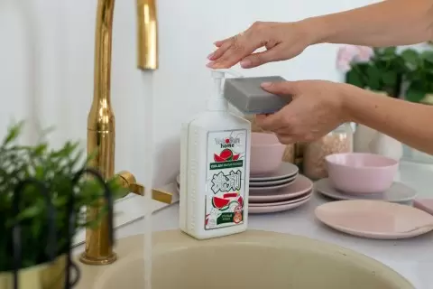Помимо этого, густая и концентрированная формула позволяет экономить: достаточно всего одной капли для полноценного мытья. Выбор универсальных средств, подходящих как детям, так и взрослым, также поможет сократить расходы, потому что такие продукты эффективно справляются с любых видами загрязнений — от молока до жирных соусов.