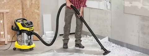 - Обеспыливание и удаление загрязнений: Следующий шаг — это избавление от пыли, которая образуется во время ремонта. Тащит за собой она и на стены, и на потолки, а также оседает на мебель. Специализированный пылесос с фильтрацией поможет эффективно справиться с этим.