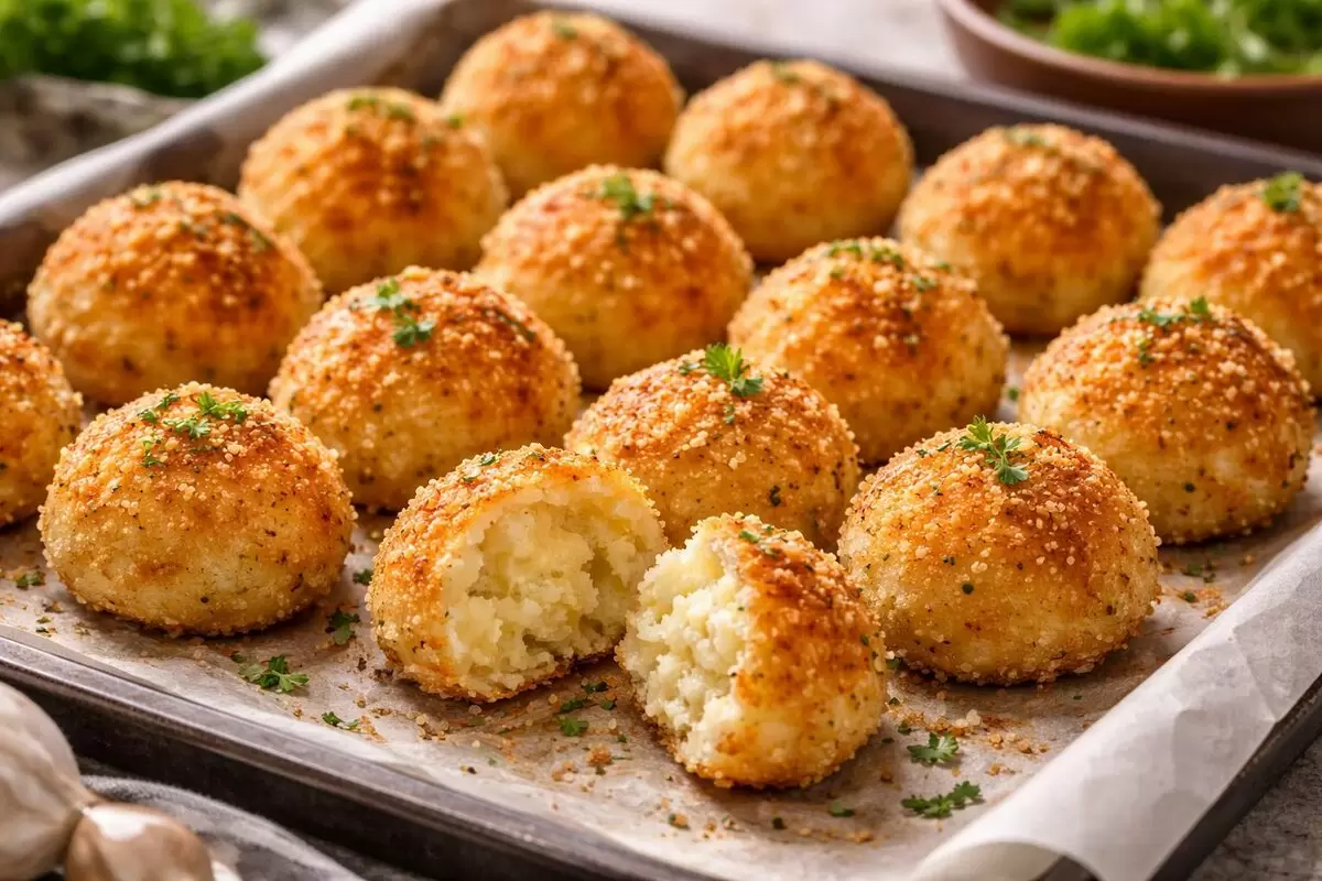 Представляем картофельные шарики: хрустящие снаружи и мягкие внутри. Эти лакомства исчезают с противня так быстро, что их порой не успевают подать на стол. И всё это без вредного фритюра — духовка справляется на ура!