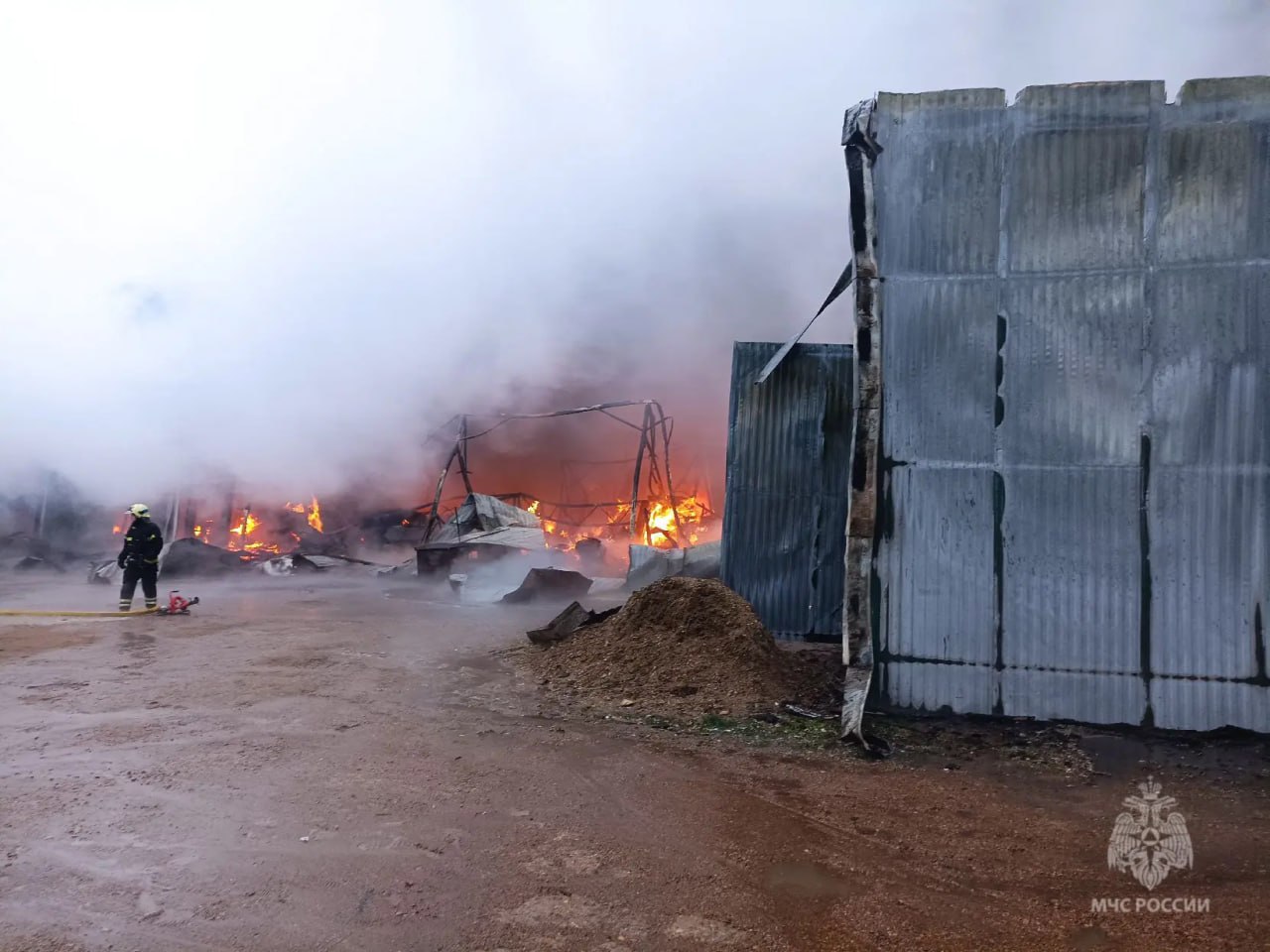 Загорелся металлический ангар