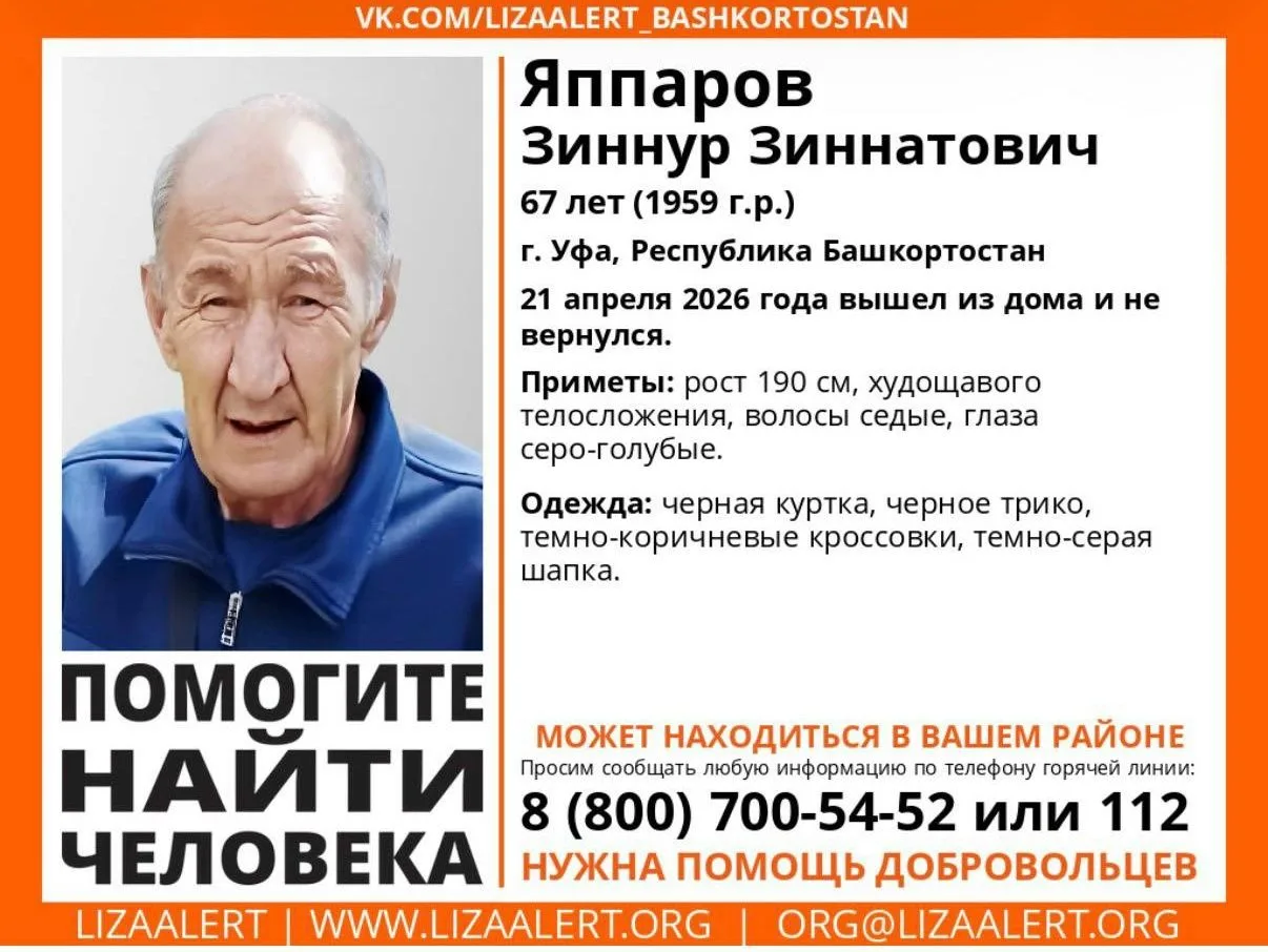 В Уфе пропал 67-летний Зиннур Яппаров. 21 апреля пенсионер вышел из дома, но обратно так и не вернулся.