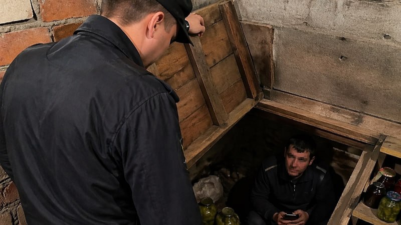 Когда приставы начали его искать, родные утверждали, что не знают, где он. Однако его нашли в погребе, спрятавшимся среди банок с соленьями.