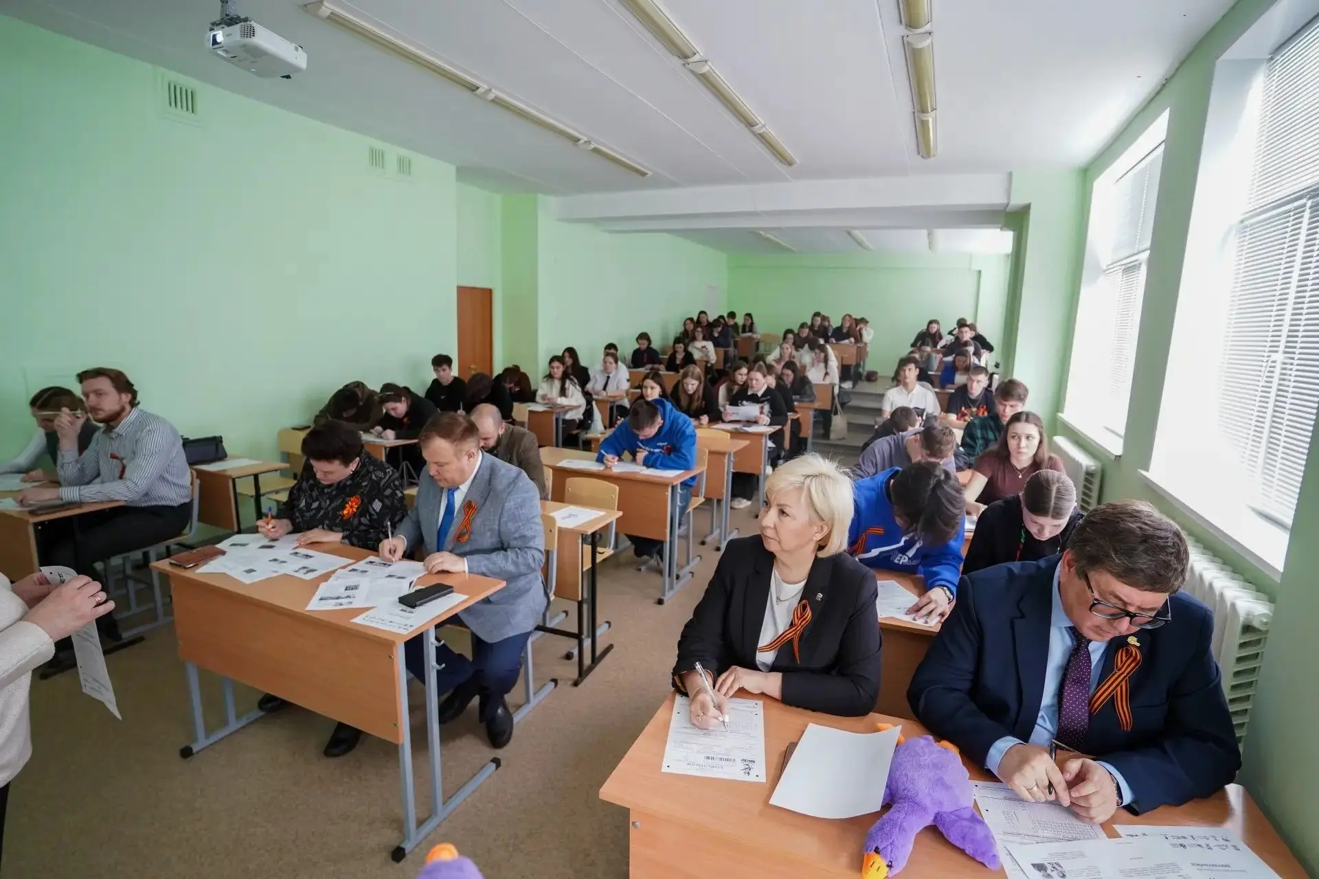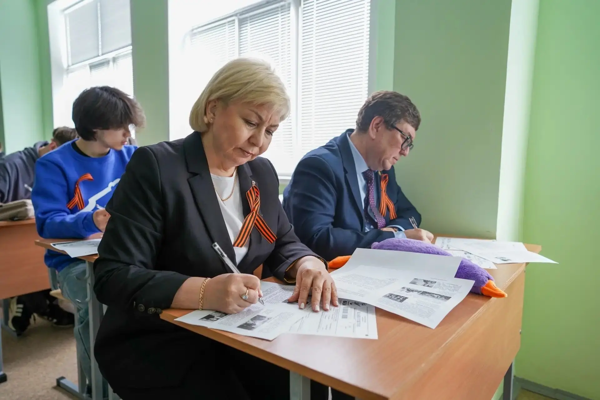 Также сегодня за партами объединились депутаты, студенты, работники образовательных и культурных учреждений, представители общественных организаций, руководители предприятий, участники СВО и члены их семей и все неравнодушные горожане.