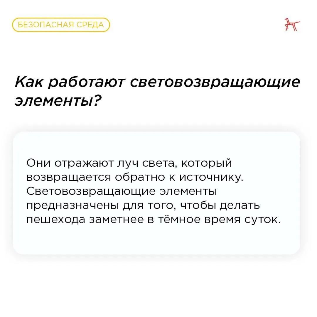 Больше о световозвращающих элементах — в карточках.