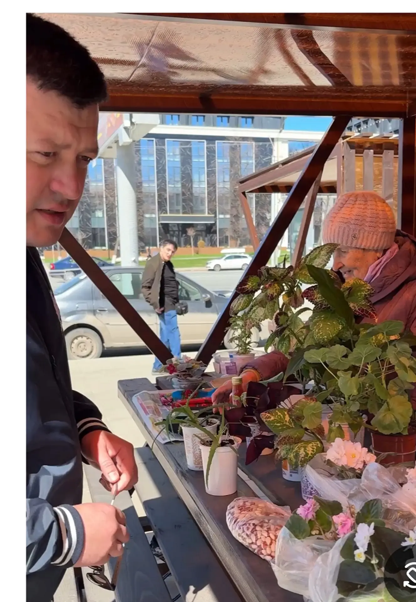Мэр лично поддержал бизнес бабушек, купив у одной из них алоэ за 150 рублей. Бабушка в ответ поблагодарила Ратмира Мавлиева за то, что садоводы могут торговать на специально оборудованных площадках.