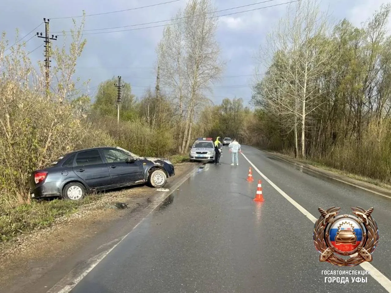 Водитель «Лады Гранты» не справился с управлением, съехал с дороги, после чего машина перевернулась. Мужчину с травмами доставили в больницу.