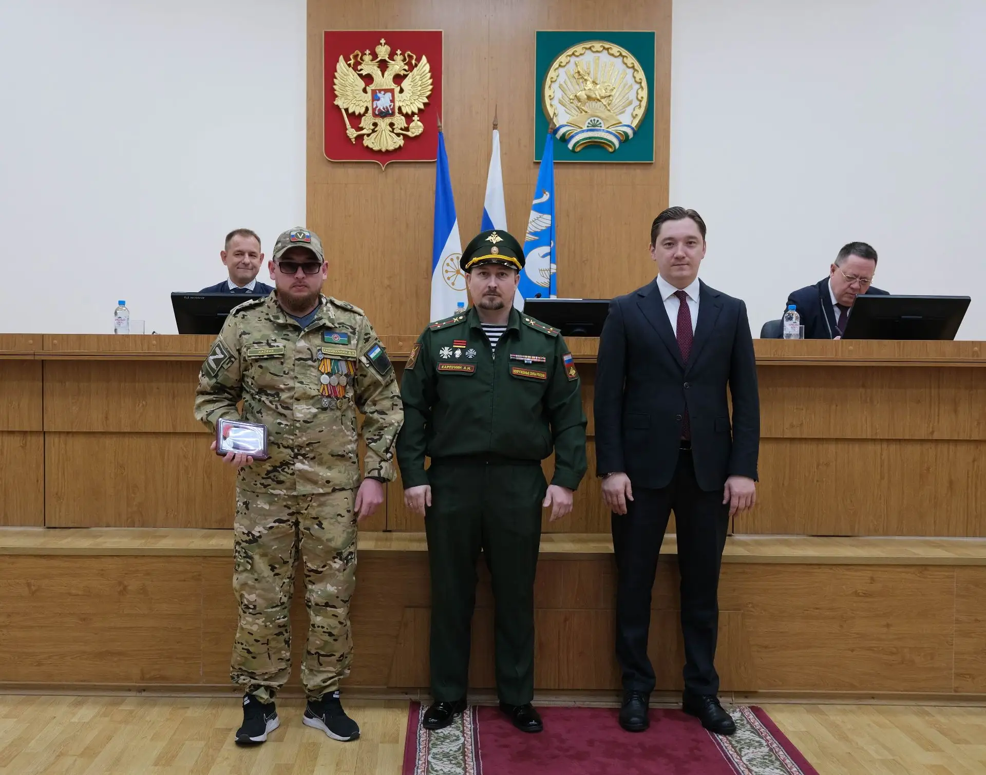 Сегодня на оперативном совещании глава администрации города Эмиль Шаймарданов и сотрудник военного комиссариата города, старший лейтенант Александр Карпунин наградили военнослужащих, участников специальной военной операции.