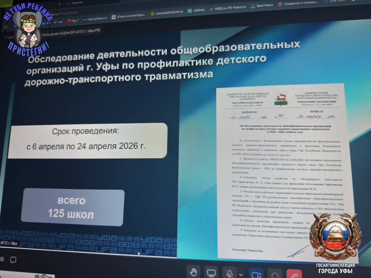 24 апреля, в заключительный день проведения профилактической акции «Госавтоинспекция в защиту детей!» сотрудники Госавтоинспекции Уфы приняли участие в городском совещании Комиссии по делам несовершеннолетних и защите их прав в режиме видео-конференции, где совместно с другими заинтересованными ведомствами обсудили вопросы детской безопасности.