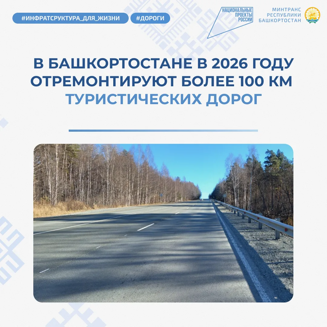 В Башкортостане в 2026 году отремонтируют более 100 км туристических дорог в рамках национального проекта «Инфраструктура для жизни»