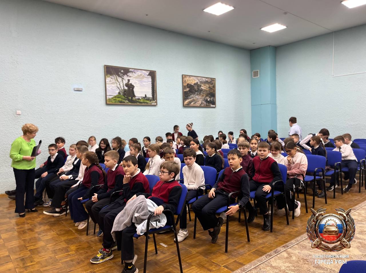 Сотрудники Госавтоинспекции Уфы выступили перед школьниками с профилактической беседой, рассказали о том, как правильно пристегиваться, находясь в салоне автомобиля, почему важно носить светоотражающие элементы и переходить дорогу только по пешеходному переходу.