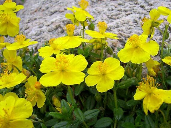 - Солнцецвет: Это растение идеально подходит для солнечных участков и радует глаз яркими цветами. Гелиантемум, или солнцецвет, может цвести на протяжении всей лета и не боится засухи.