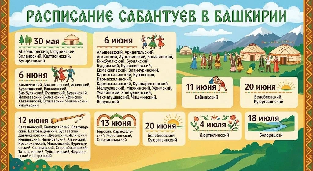 Расписание сабантуев в Башкирии в 2026 году