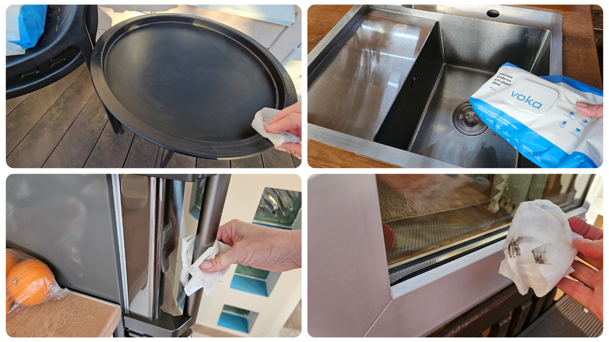 Салфетки VOKA легко удаляют грязь и устойчивые пятна. Их эффективность проверена на кухонных фасадах, дверях, металлических ручках и даже раковинах. А для тех, кто занимается садоводством, они станут отличным средством для очищения рук от земли без использования воды и мыла.