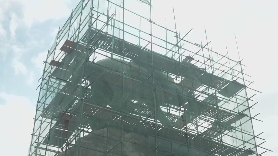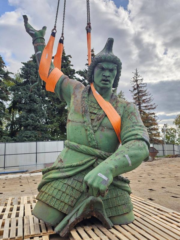 Чтобы не повредить скульптуру, ее предварительно разъединили по швам. В течение нескольких ближайших дней аналогичным образом будет разъединена на две части и фигура коня, после чего ее также поэтапно снимут.Реставрировать памятник будут в специальном...