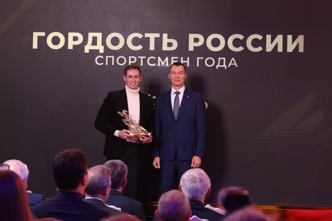 В номинации «Гордость России: спортсмен года» победил Кирилл Пригода – заслуженный мастер спорта, двукратный чемпион мира, восьмикратный чемпион мира на короткой воде.
