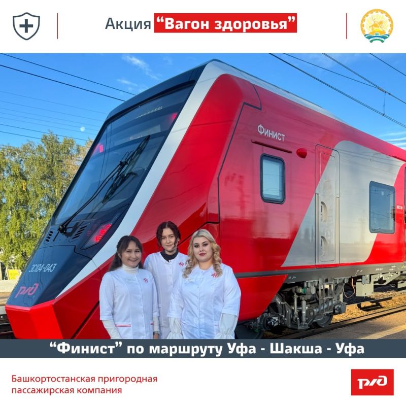 10 августа 2025 года в поезде «Финист» по маршруту Уфа – Шакша – Уфа прошла акция «Вагон здоровья» — совместный проект АО «Башкортостанская ППК» и РЖД-Медицина Уфа. Мероприятие направлено на укрепление здоровья пассажиров и пропаганду здорового образа...